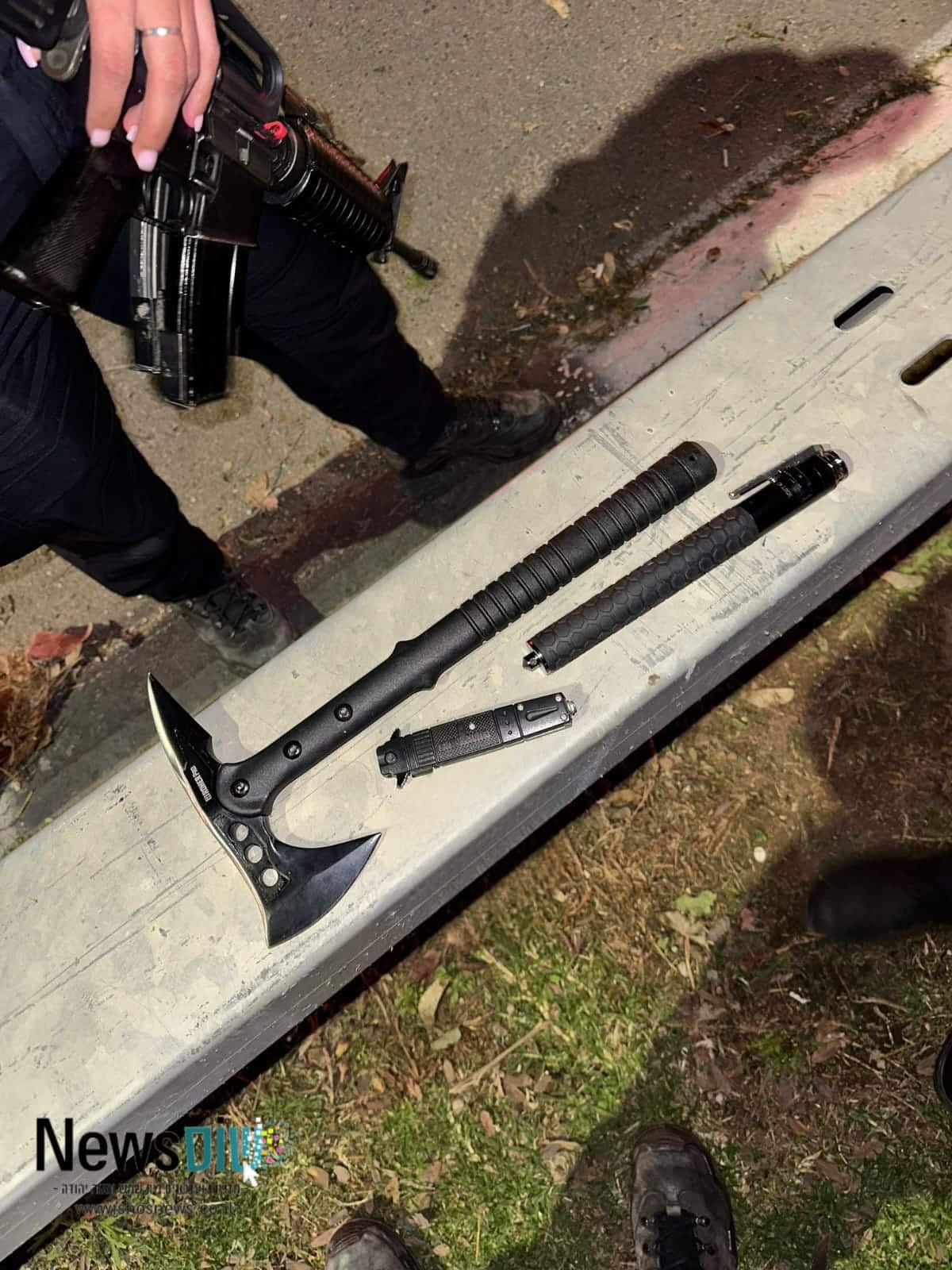 תמונה: הגרזן והציוד הנוסף שנמצא על החשוד | צילום: דוברות המשטרה