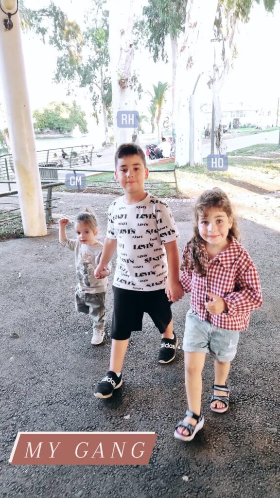 "הילדים שלי נולדו רגיל ובנס. בהריונות שלי גילו לי מחלה שאף פעם לא ידעתי שקיימת. יש לי היפראמזים גרבידרום. זו מחלה שמלווה בהמון הקאות ושכל אוכל או שתייה שאני מכניסה לגוף בהיריון, אני מקיאה אותו ובנוסף לכל זה, היה גם את העניין עם היד. בעצם הבנתי לאורך הזמן שהמחלה היא בעצם אלרגיה להיריון"