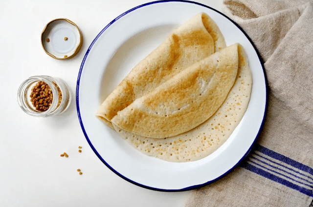 - 03.יוצקים מצקת של בלילה במחבת ומורחים אותה בשכבה דקה על כל המחבת.