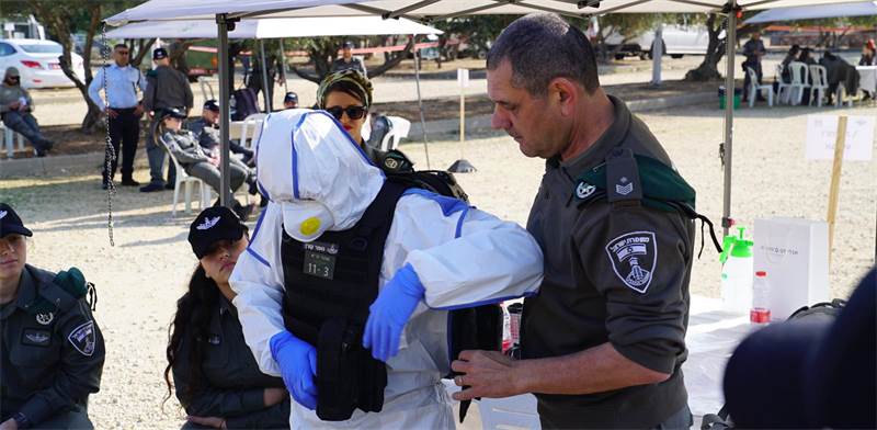 שוטרים ממוגנים עוברים הדרכה איך לטפל במפרי בידוד (אילוסטרציה) | צילום: דוברות משטרת ישראל, יח"צ