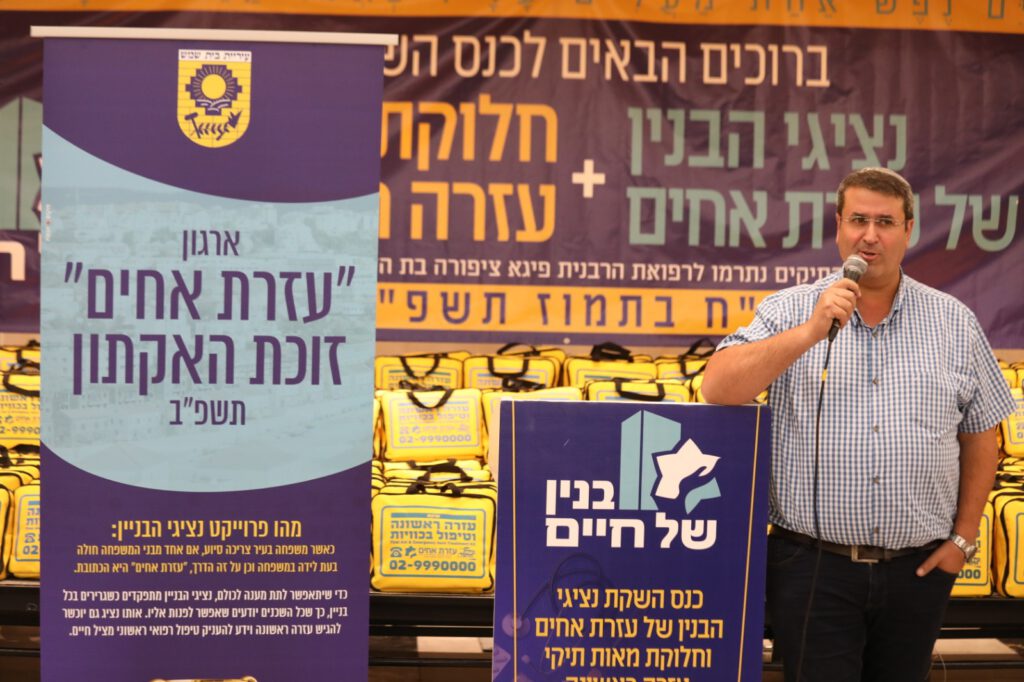 ראשון הדוברים היה רמ"ט ראשת העירייה, נתי גבאי, שהביא את דברה של ראשת העירייה הגברת בלוך ובירך את המתנדבים החדשים על כך שבחרו לעסוק בגמילות חסדים בכל רגע נתון, מעצם היותם נציגיו ושגריריו של ארגון "עזרת אחים" שמרכז תחתיו את כל תחומי פעילות החסד בבית שמש. הוא הזכיר את זכיית הארגון בהאקתון של עיריית בית שמש על תיקי העזרה ראשונה שחולקו בטקס, כאשר מדובר היה ביוזמה זוכה מתוך 300 יוזמות שהוצגו.