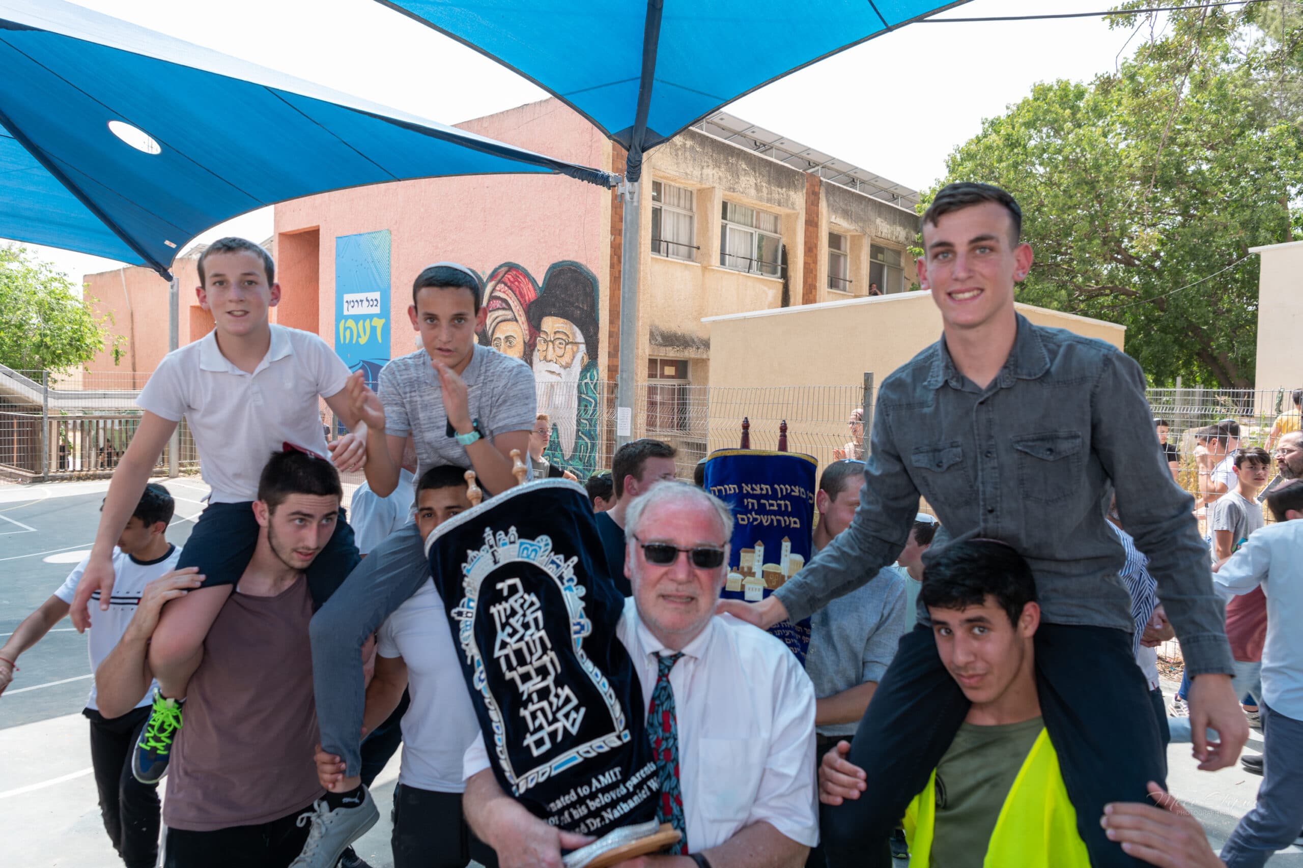ספר תורה לזכר הוריו: השבוע הוכנס ספר תודה לבית המדרש בישיבת אמית נחשון. את ספר התורה תרם ד"ר רון וורין מפילדלפיה, לזכר הוריו ד"ר נתנאל וסופיה וורין ז"ל שנפטרו לפני מספר שנים. למרות גילו המבוגר, ד"ר וורין הצטרף לתהלוכה השמחה ורקד יחד עם התלמידים בהתלהבות רבה.