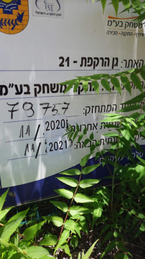 הגענו למקום על מנת לבדוק מתי הייתה הפעם האחרונה בה בוצעה בדיקה, לפי השלט בכניסה לגן בנובמבר 2020 הייתה הבדיקה האחרונה והבאה אחריה תהיה רק בנובמבר 2021.