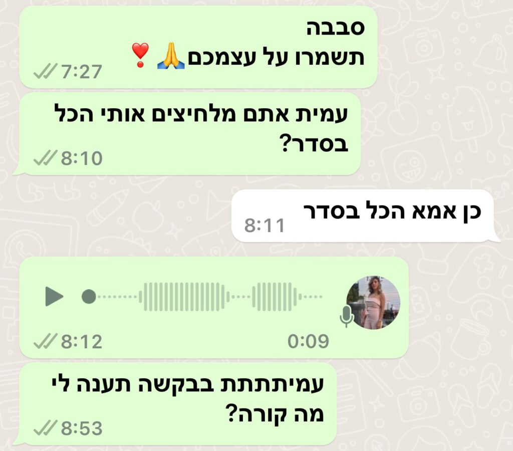 "משם המשכנו לחפש בבתי חולים נוספים. הקמנו חמ"ל וחילקנו את בני המשפחה לקבוצות. כשכל קבוצה קיבלה בית חולים ואחריות לחיפוש אחר עמית. התקשרנו לכל בית חולים אפשרי ולכל מוקד מידע, שלחנו הודעות בקבוצות של חיפושי נעדרים, חיפשנו בכל הרשתות החברתיות האפשריות אם קיים מידע שיכול לעזור לנו למצוא או להבין מה עלה בגורלו של עמית. אך לא הצלחנו בכך. הזמן חלף ועבר כשכל דקה היא נצח עבורנו. אנחנו מטלטלים בין ייאוש לתקווה. כל פרסום על פצועים נוספים שהגיעו לבית החולים, הפיח בנו תקווה שאולי עמית נמצא בניהם. אך שוב ושוב התאכזבנו ועמית לא נמצא", ממשיכה לימור, "ביום שני בערב התפרסמה תמונה של עמית בטיק-טוק כשהוא שכוב על בטנו ופצוע. לצד התמונה הייתה התכתבות ווטסאפ בין אנשים שכתבו בין היתר – 'יש פה גופות' וצירפו את התמונה של עמית", שיתפה בלב כבד לימור. 9םך