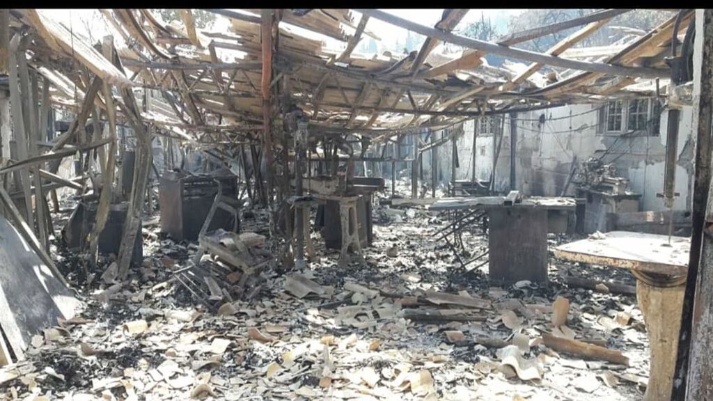 "הבית שלי, בית המלאכה בו אני פועל כבר 40 שנה, הקליניקה של אשתי – הכול נחרב עד היסוד. כלום לא שרד", מספר הררי. הנזק שנגרם להררי מוערך בסכום של בין שלושה לארבעה מיליון שקלים. הוא כולל עשרות פריטים נדירים עשויים מעץ מיוחד ששווים מגיע לסכומים גבוהים מאוד, חתיכות של עצי זית מארץ ישראל בני 1,500 שנה, מכונות וציוד מקצועי, ועוד.
