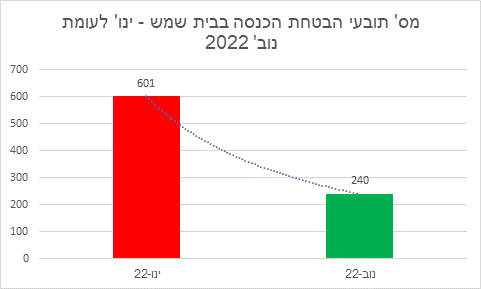 "מאז תום משבר הקורונה הירידה במספר תובעי הבטחת ההכנסה עקבית ומתמשכת, ותובעי הבטחת ההכנסה הולכים ושבים למעגל העבודה בהיקפים גדולים. לשם המחשה, בינואר 2022 עמד מספר תובעי הבטחת ההכנסה בבית שמש על לא פחות מ- 601 תובעי הבטחת הכנסה ואילו כעת, בנובמבר, מספרם עומד על 240 בלבד"