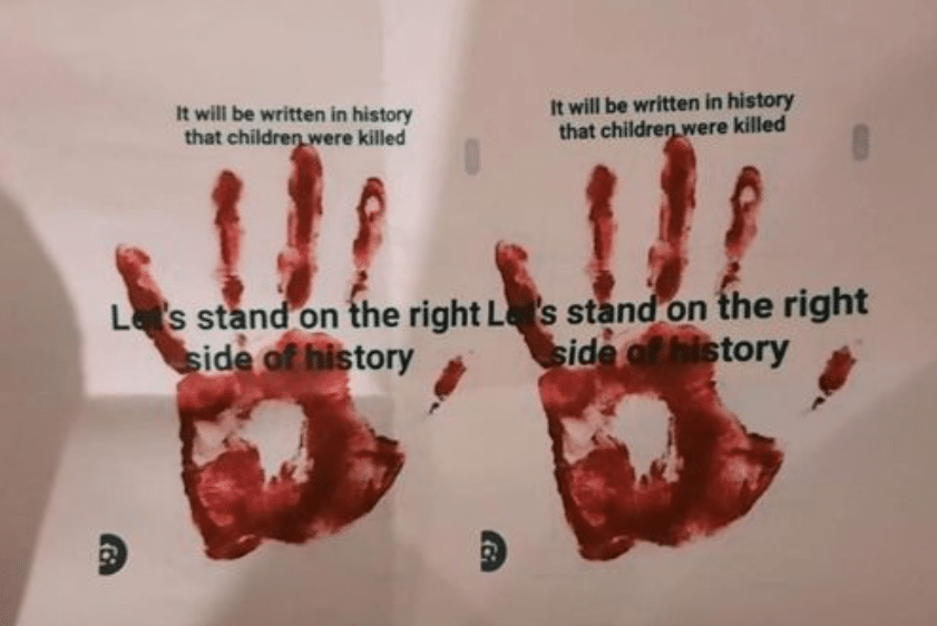 כך למשל, לבקשתה של ״אנה״ הדפיס ותלה הנאשם מודעות שבמרכזן תמונה כף יד שנראת שטופת דם ותחתה כיתוב באנגלית שמשמעו – ״יהיה כתוב בהיסטוריה שילדים נהרגו, בואו נעמוד בצד הנכון של ההיסטוריה״. לטובת תליית המודעות, גייס הנאשם אאדם נוסף וסיכם איתו שישלם לו בעבור המשימה. השניים תלו את המודעות בתל אביב בהנחיית ״אנה״, תוך שנחומקה מצלם את עצמו עושה זאת, שולח לנאשם וזה בתורו מעביר הצילומים ל״אנה״. בעבור המשימה, קיבל הנאשם תשלום מ״אנה״.