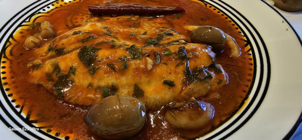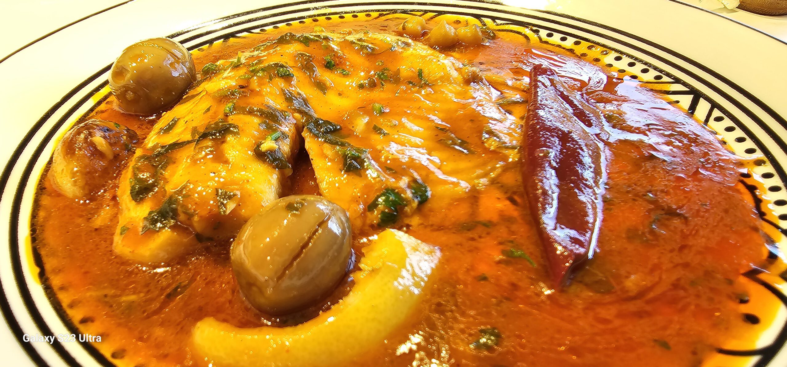 לחמם סיר רחב עם רבע כוס שמן, לטגן מעט את שיני השום והתבלינים שיפתחו (זהירות שלא יחרכו), להוסיף כוס מים, וחצי מכמות הכוסברה. לסדר את הדגים בסיר ולהניח מעל את חתיכות הדג פרוסים ואת התוספות: פלפלים חריפים ומתוקים, זיתים ופרוסות לימון. לכסות את הדגים עד הסף שלהם ולפזר את יתרת הכוסברה מעל. (לא לקמץ בירק). לאחר מכן, להנמיך אש, לסגור את המכסה של הסיר ולבשל עד שהבשר של הדגים לבן ויפה והרוטב סמיך. מדיי פעם לנענע את הסיר. אם יבש מדיי להשקות את הסיר כל פעם בחצי כוס מים.