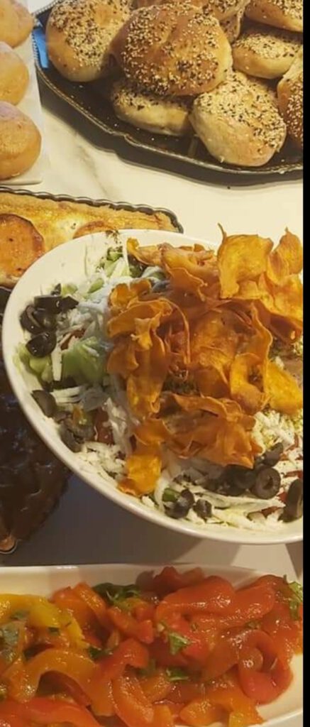 "לטעמי התוספות הטעימות ביותר הן אננס טרי ופלפל חריף אש, הניגודיות של הטעמים שנפגשים בפה הופכים לחגיגה של ממש. ולצד זה סלט בטטה עם רוטב הדרים ממכר שיכול להפוך אורח בכל ארוחה"