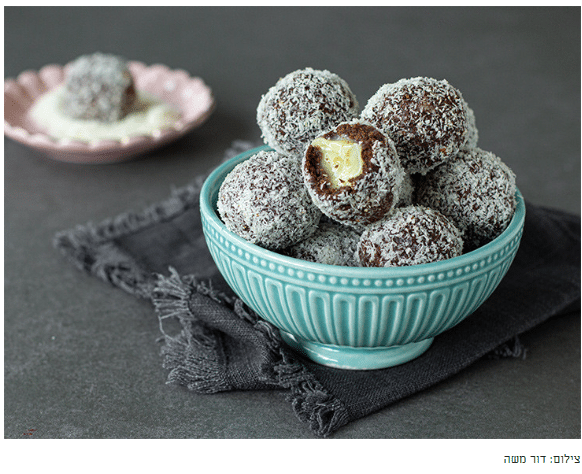 - 08.מצפים את הכדורים בקוקוס ושומרים בקירור עד ההגשה.