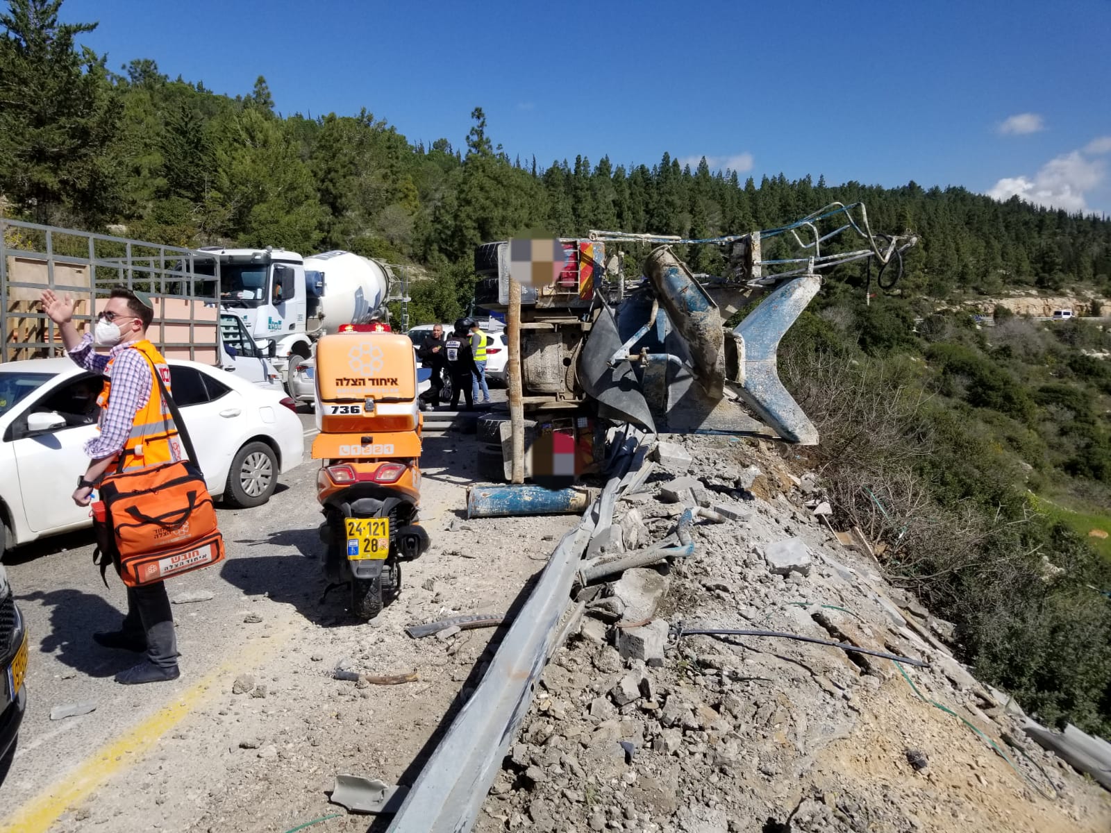 תמונה: משאית התהפכה. מצב הנהג קל | צילום: איחוד הצלה