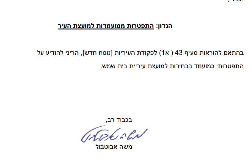 תמונה: מכתבו של אבוטבול שנשלח ללשכת העירייה