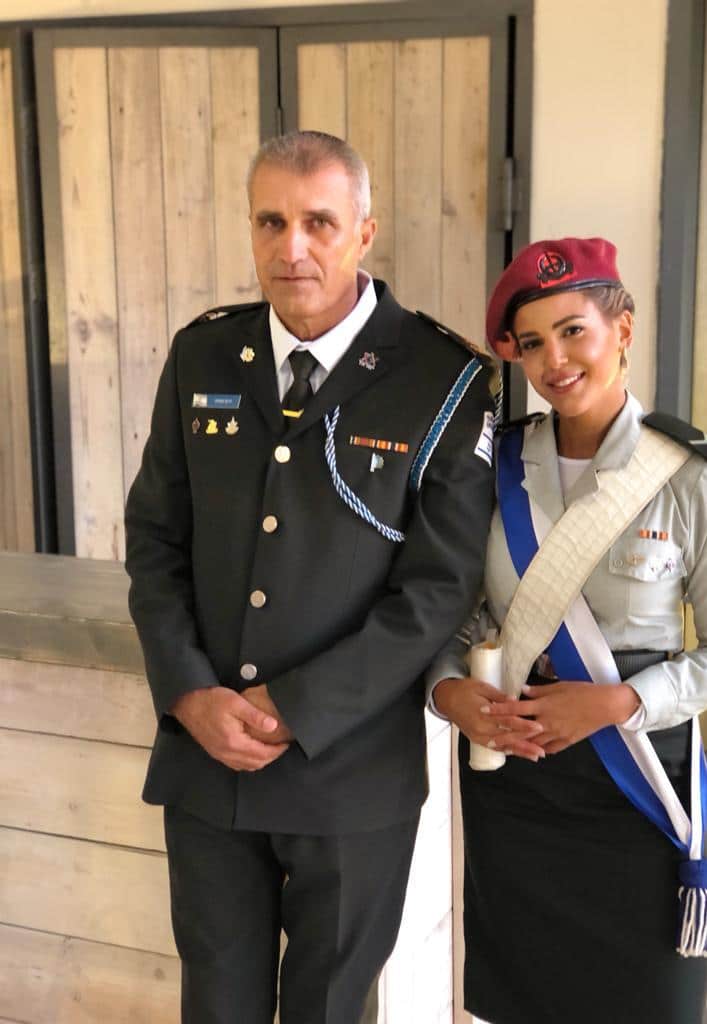 לינוי לוי עם סגן מפקד טקס המשואות בהר הרצל