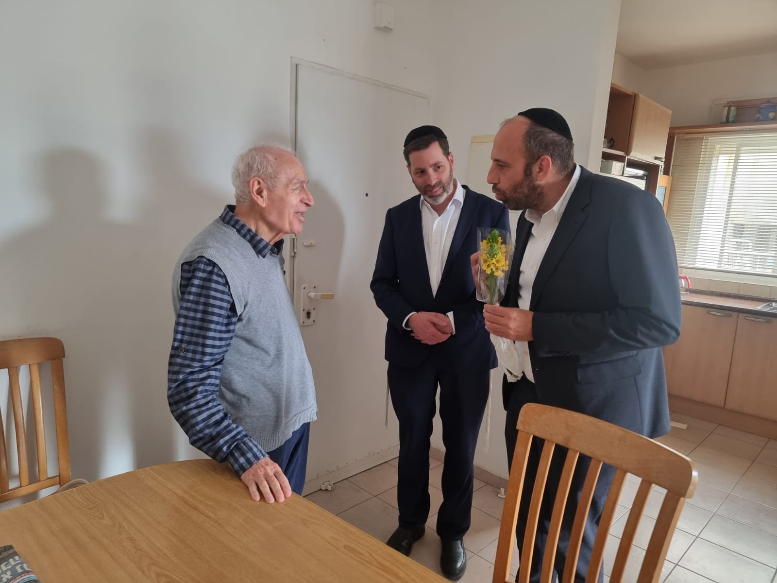 "אתם דור המייסדים": שמואל גרינברג, ראש העירייה הגיע יחד עם המשנה לראש העירייה ומחזיק תיק הרווחה שלמה ברילנט לפגוש השבוע את ניצול השואה בוריס גלוקסין, במסגרת מיזם "פרח לניצול" ביום הזיכרון לשואה ולגבורה.