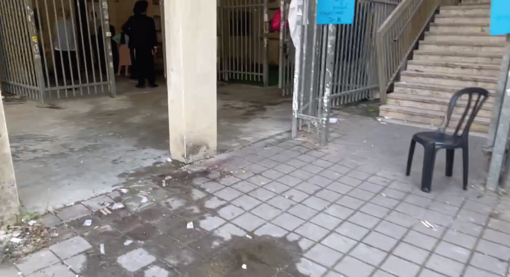 תמונה: הקלפי והנוזל ששפכו הקיצוניים על הרצפה | צילום: חיים גולדיטש