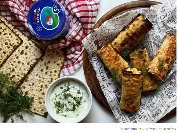 - 06.חוצים את המצה הרטובה לחצי, שמים בכל חצי כף מלית ומגלגלים לרולים.