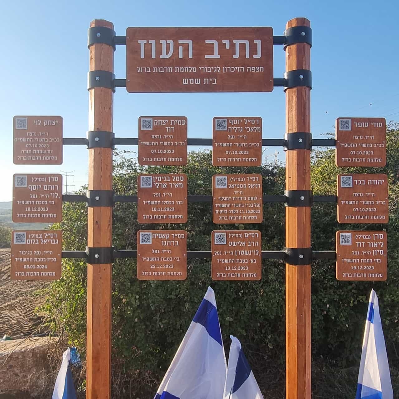 דמעות חנקו את גרונותיהם של ההורים, האחים והאחיות, האלמנות והיתומים, כשלעיניהם נחשף שלט הנצחה מיוחד הנושא את השם "נתיב העוז". דמויותיהם של גיבורי בית שמש ניצבו לנגד עיניהם של הנוכחים: נערים צעירים, הורים לילדים, חיילים אמיצים, כולם נקטפו באכזריות במהלך המלחמה הארורה. על גבי השלט, בלטו 12 שמות חקוקים בעץ מלווה בברקוד נפרד לכל חלל הניתן לסריקה דרך הטלפון הנייד ולקבל היישר לטלפון הנייד את סיפור חייהם וקורותם של הנופלים תושבי העיר.