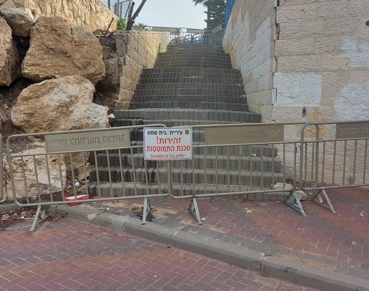 "מתחילה להיות נפילה גם במבנה שלצד המדרגות, וגם זה מהווה סכנה של נפילה לא פחות קריטית. המדרגות שבורות והחומה עומדת ליפול והמקום סגור כבר מתחילת השנה. פניתי אליהם השבוע שוב, צילמתי תמונות ושלחתי למוקד בווטסאפ, ועד עכשיו לא פנו או התייחסו"