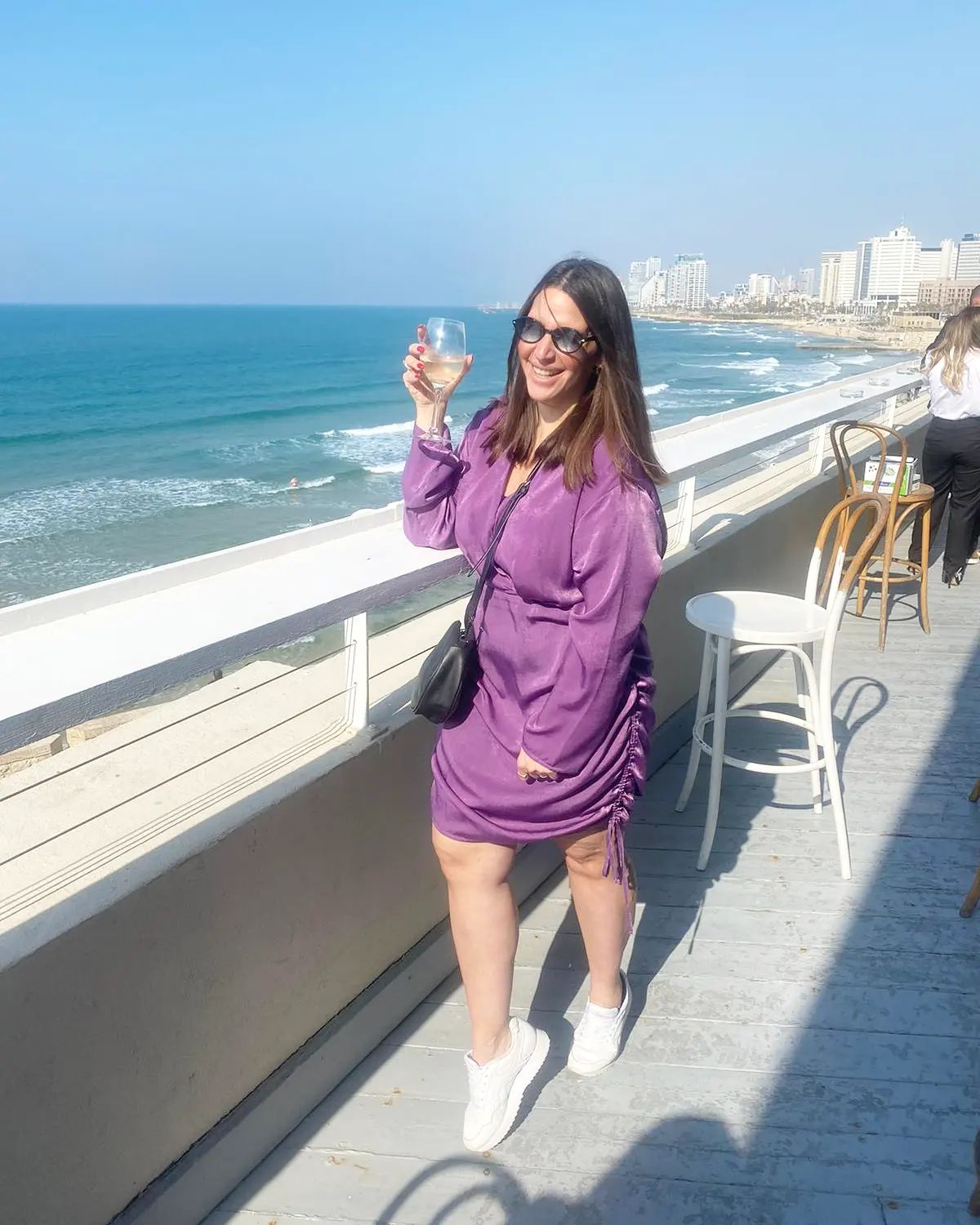 סתיו ימיני ניסים המדהימה, נתפסה בעדשת המצלמה של לכלוכית בזמן שהיא מחזיקה כוס יין בכנס מנהלים מטעם "קסטרו".