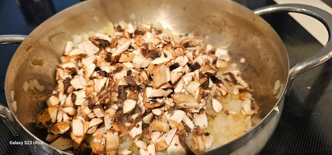 הכנת המילוי: מחממים את השמן במחבת גדולה ומטגנים את הבצל עד להזהבה. מוסיפים את השום והפטריות ומטגנים עד שהפטריות מתרככות. מוסיפים כוסברה ומתבלים ומערבבים היטב. לאחר מכן – מצננים.