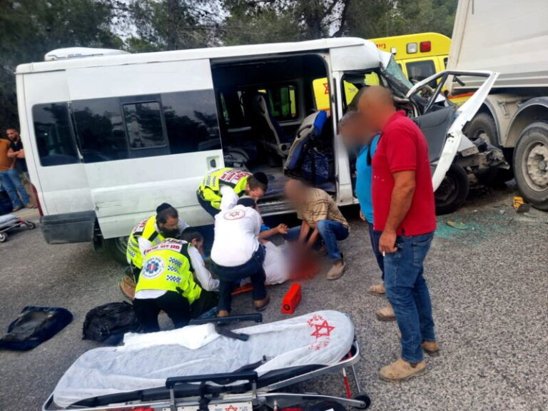תאונת ענק: 20 נפגעים בתאונת דרכין בין מיניבוס למשאית