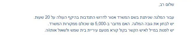 תמונה: המייל שנשלח למשרד הנגב, הגליל והחוסן הלאומי
